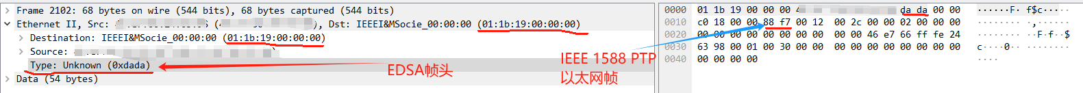 带 EDSA 协议头的 PTP 抓包数据如下图: