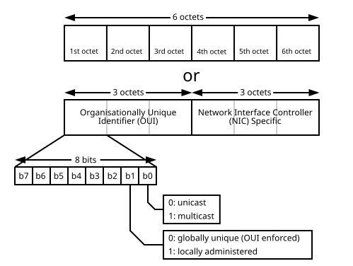 is 0 then it is an OUI globally assigned by the IEEE; if the bit is 1 then it is a locally