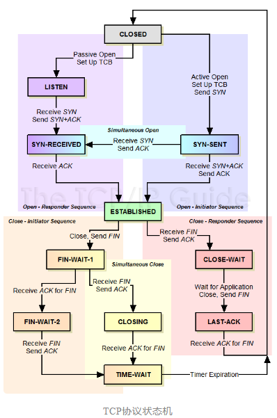 TCP 服务端 和 客户端 socket 各自的 序号初始值 在连接建立的 三次握手 过程中建立,分析过程参考上面的第二张图进行(我们假定 服务端 当前处于 LISTEN 态(TCP_LISTEN)(即已经调用了 listen())。