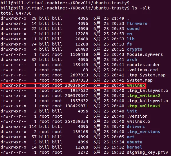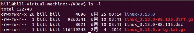 当下载完成,以上的命令将会自动调用工具dpkg-source将下载的内核源码解压到当前的目录中,与此同时根据.dsc文件来下补丁。