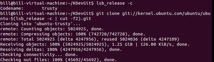 这个 git 仓库的速度不是很给力,还是方法1的比较快,至少我这里这样的。最终会产生一个名为ubuntu-$(lsb_release -c)的目录,在我这里是ubuntu-trusty。