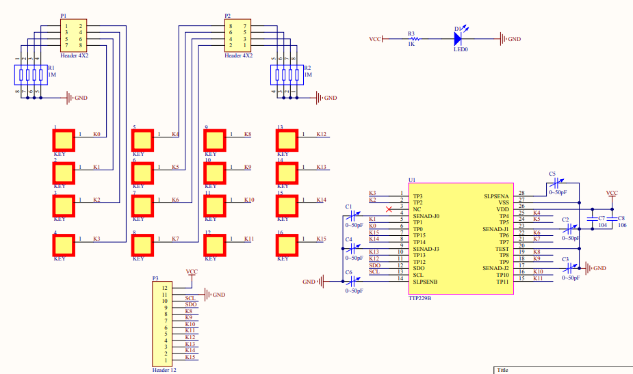 门禁设备加入一款 TTP229 芯片,作为输入键盘,没有驱动代码提供,需为该设备编写Linux input驱动。设备相关原理图如下: