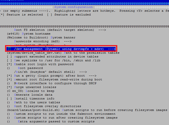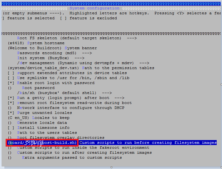 上图中红色框中部分,正是指向我们前面新建的board/s5p4418/post-build.sh脚本。buildroot 配置完成,编译 buildroot 。在编译 buildroot 之前,确保将board/s5p4418/etc/hotplug/sd/sd_insert和board/s5p4418/etc/hotplug/sd/sd_remove脚本,拷贝到根文件系统相应目录中。