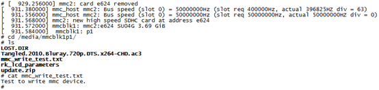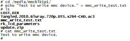 echo “Test to write mmc device.” > mmc_write_test.txt