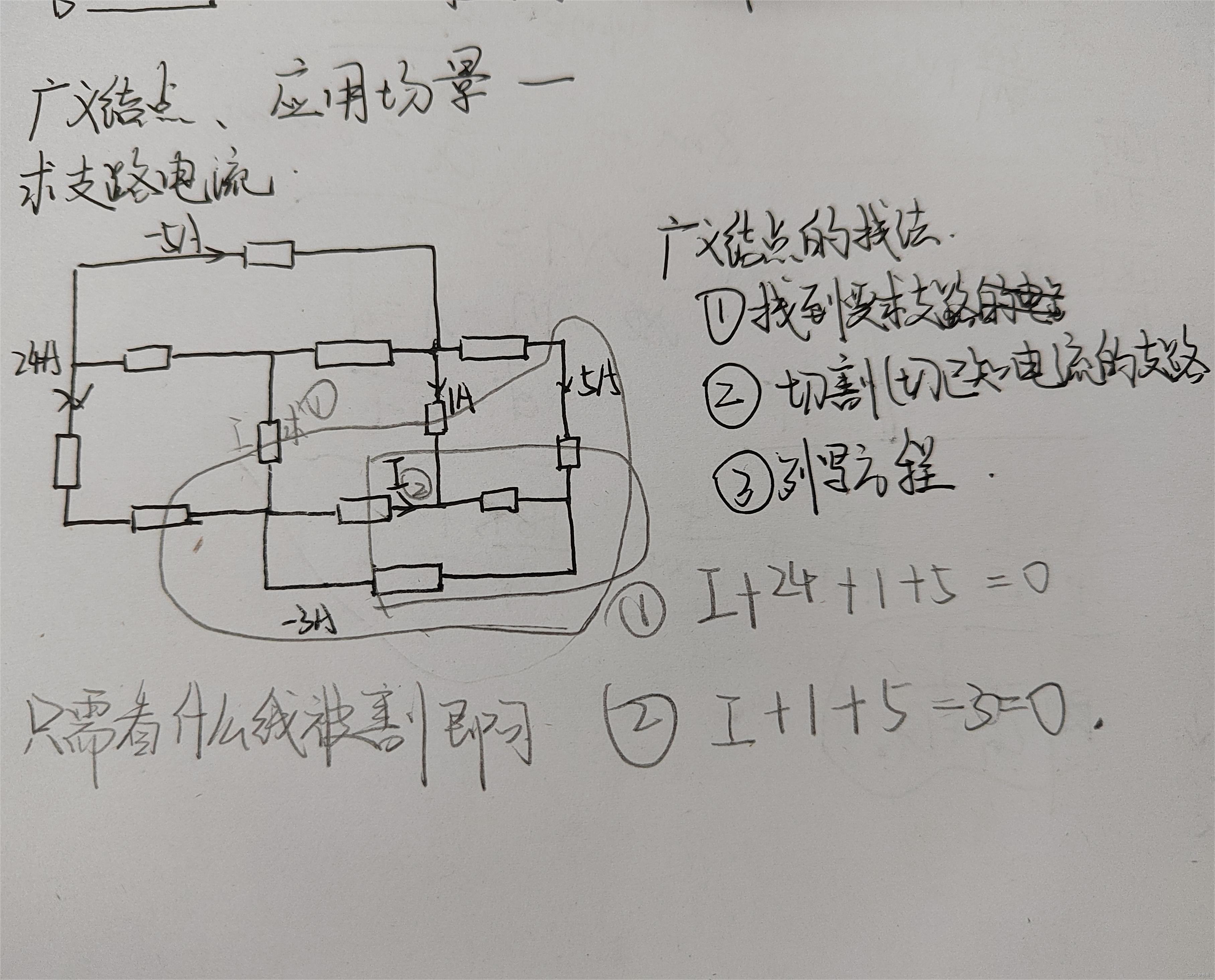 广义拓展:想象一条线的连接,构成回路,列些KVL方程