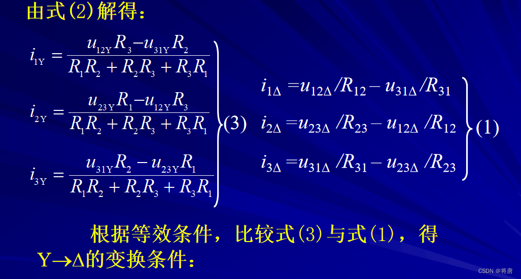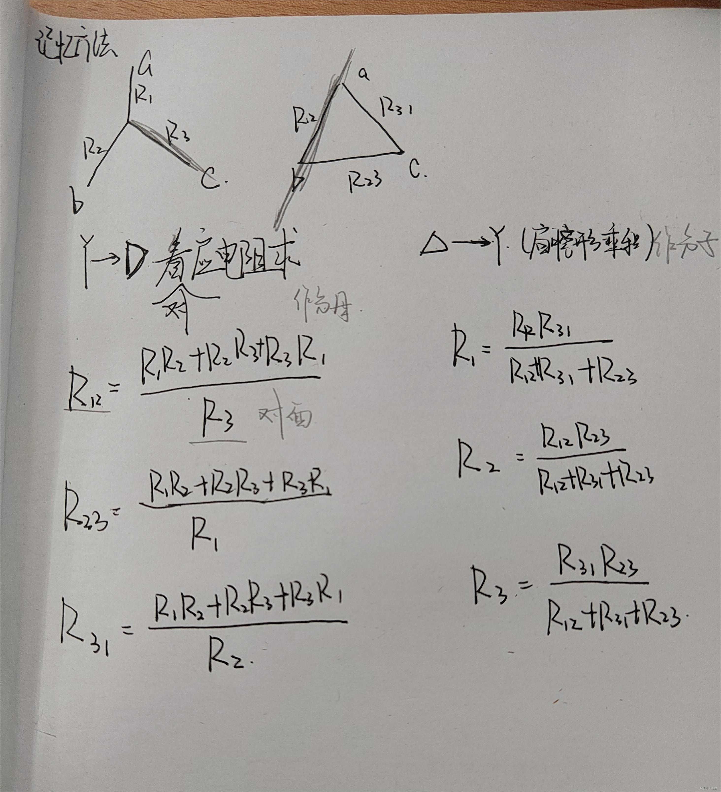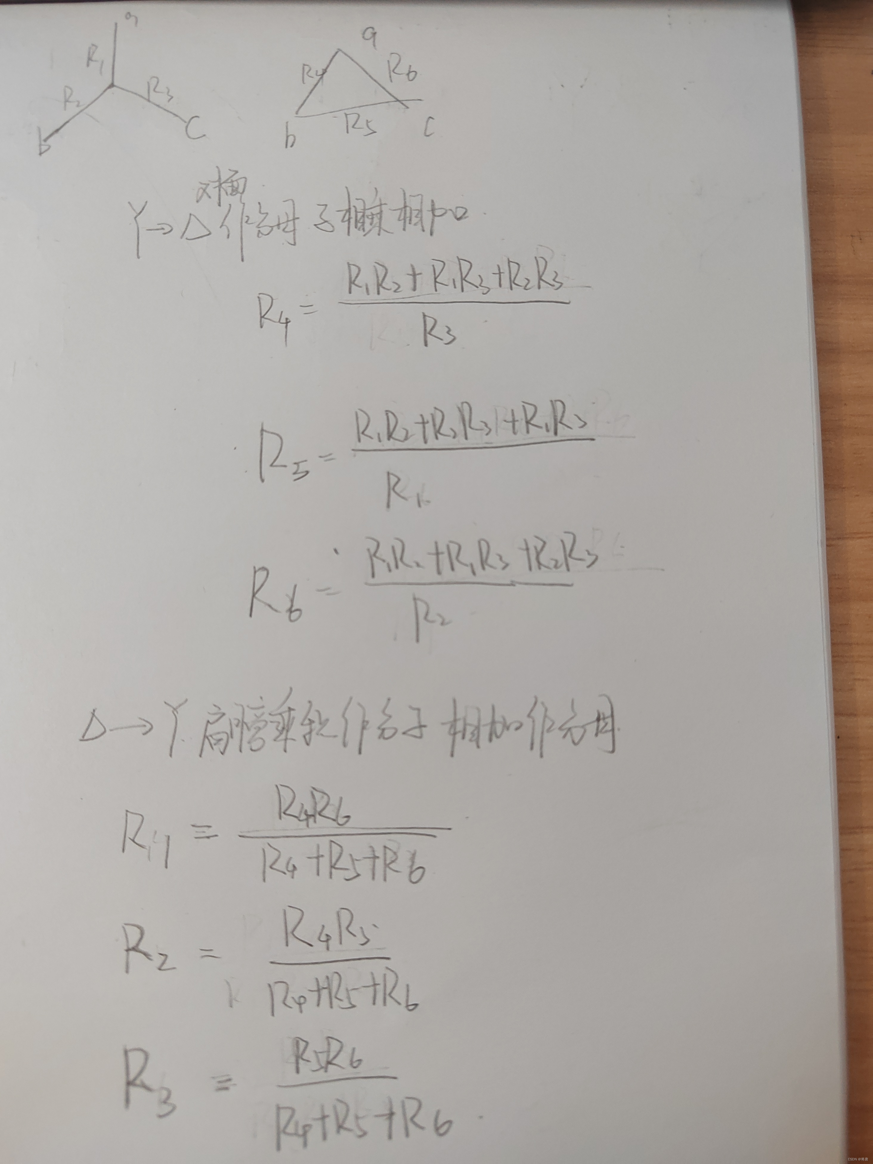 表示Y形时,由于Y电阻小,所以分母就是三个电阻相加(分子就是肩膀相乘)