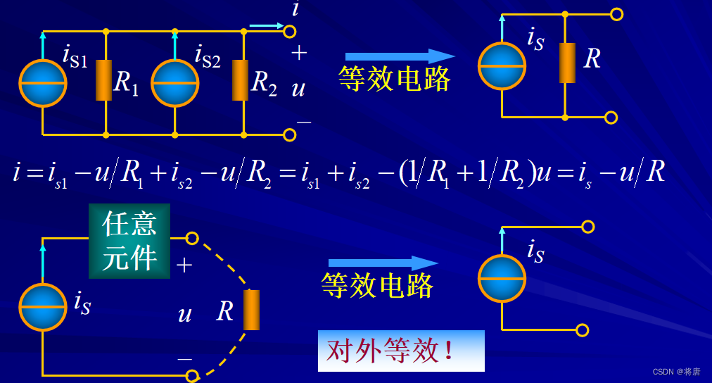 与电流源串联的任意元件都可以忽略(不管串联部分有多么复杂)