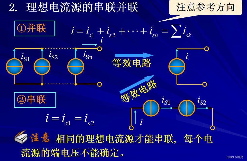 相同的理想电流源才能够串联,每个电流源的端电压不能够确定