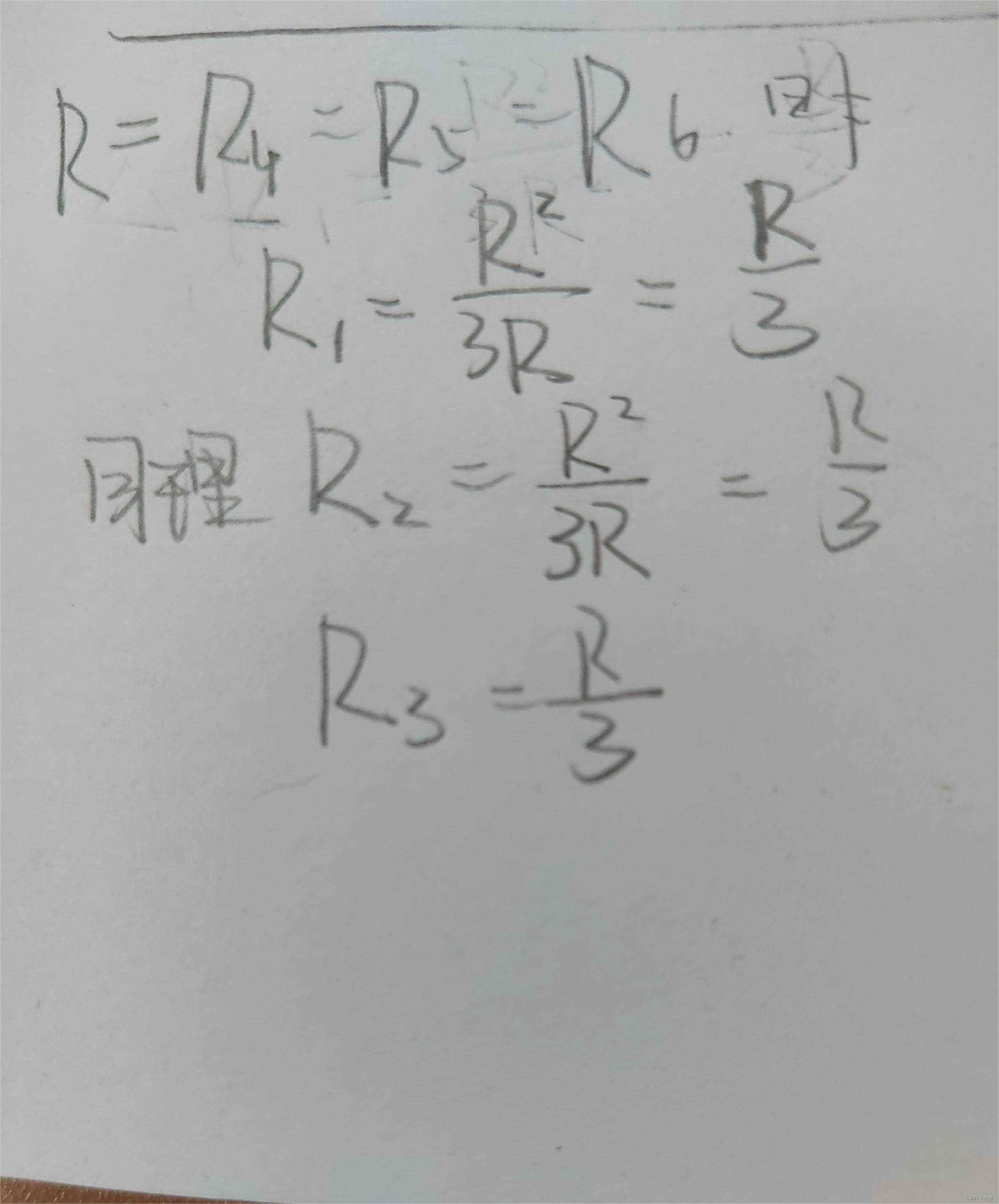特殊情况(当电阻都相等时)这里的R3,R4,R5参考上图当中的R4,R5