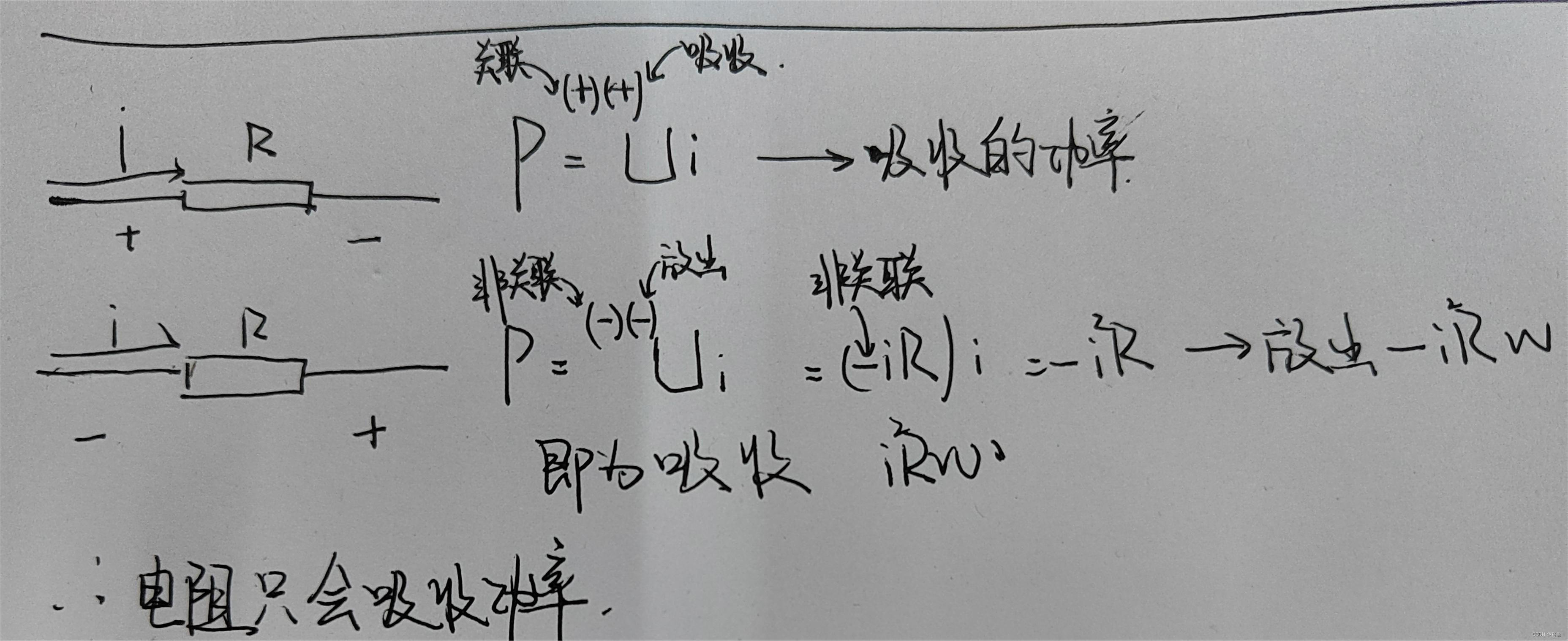 对于电阻来讲,电压和电流的实际方向一定是关联的,说明电阻要么消耗功率因为没有使用,要么一定消耗功率因为它使用了,因此电阻在任何时候都是消耗功率的