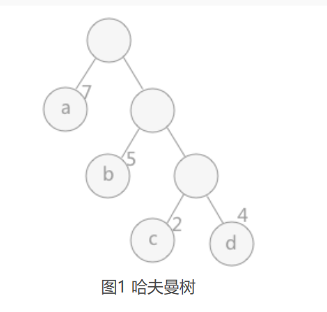 在构建哈弗曼树时,要使树的带权路径长度最小,只需要遵循一个原则,那就是:权重越大的结点离树根越近。在图 1 中,因为结点 a 的权值最大,所以理应直接作为根结点的孩子结点。