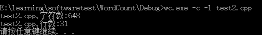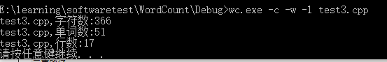 当控制台指令为wc.exe -c test.c时,这三个参数分别对应argv[]的argv[0],argv[1],argv[2],以此类推。