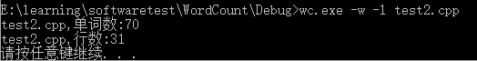 wc.exe -c file.c //返回文件 file.c 的字符数 wc.exe -w file.c //返回文件 file.c 的单词总数 wc.exe -l file.c //返回文件 file.c 的总行数 wc.exe -o outputFile.txt //将结果输出到指定文件outputFile.txt