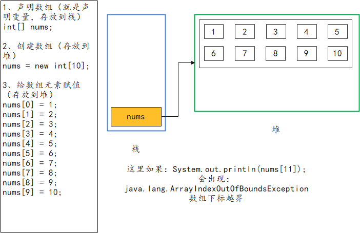 1 int[] a = new int[10]; 2 3 a[0] = 1; 4 5 a[1] = 2;