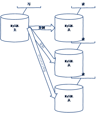 Mysql服务器内部支持复制功能,仅仅需要通过配置完成下面的拓扑结构。一主多从典型结果:主服务器负责写数据。从服务器负责读数据。复制功能mysql会自带。