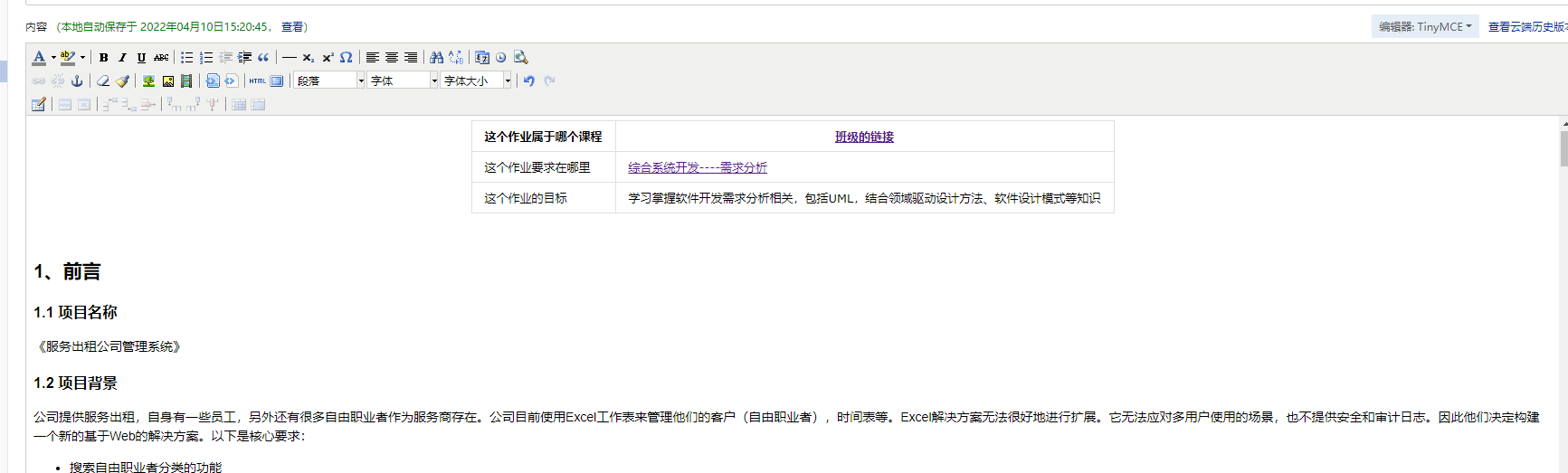 公司提供服务出租,自身有一些员工,另外还有很多自由职业者作为服务商存在。公司目前使用Excel工作表来管理他们的客户(自由职业者),时间表等。Excel解决方案无法很好地进行扩展。它无法应对多用户使用的场景,也不提供安全和审计日志。因此他们决定构建一个新的基于Web的解决方案。以下是核心要求: