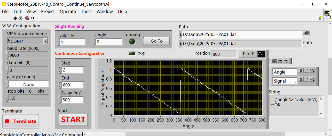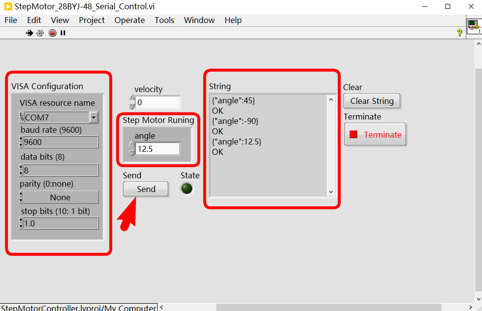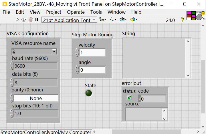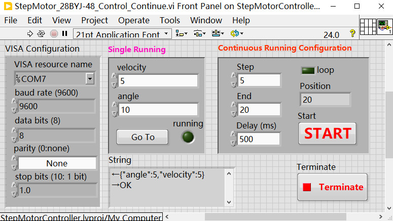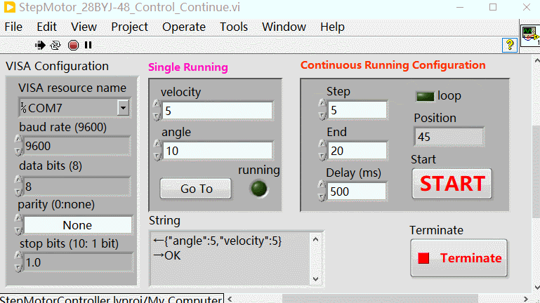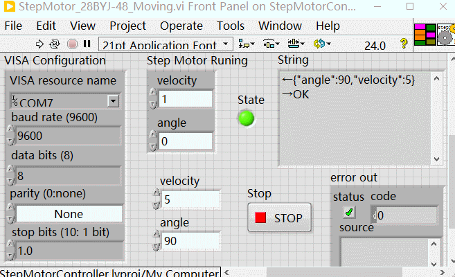 🌎 在前面关于串口发送 json 指令使 RP2350 通过 ULN2003 驱动 28BYJ-48 步进电机旋转指定角度的项目设计的基础上,使用 LabVIEW 上位机串口发送指令,实现步进电机旋转指定角度。