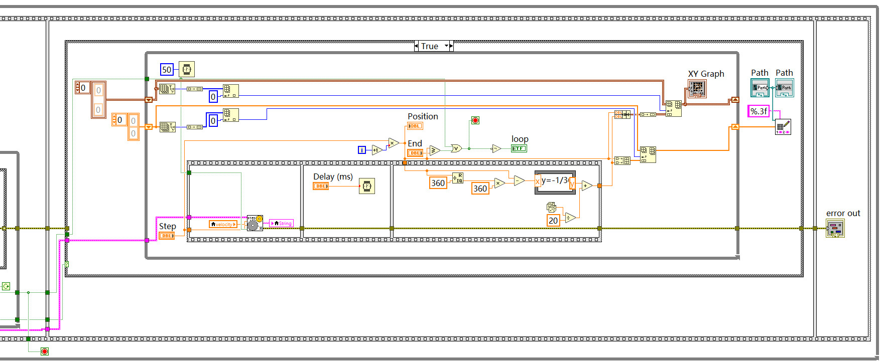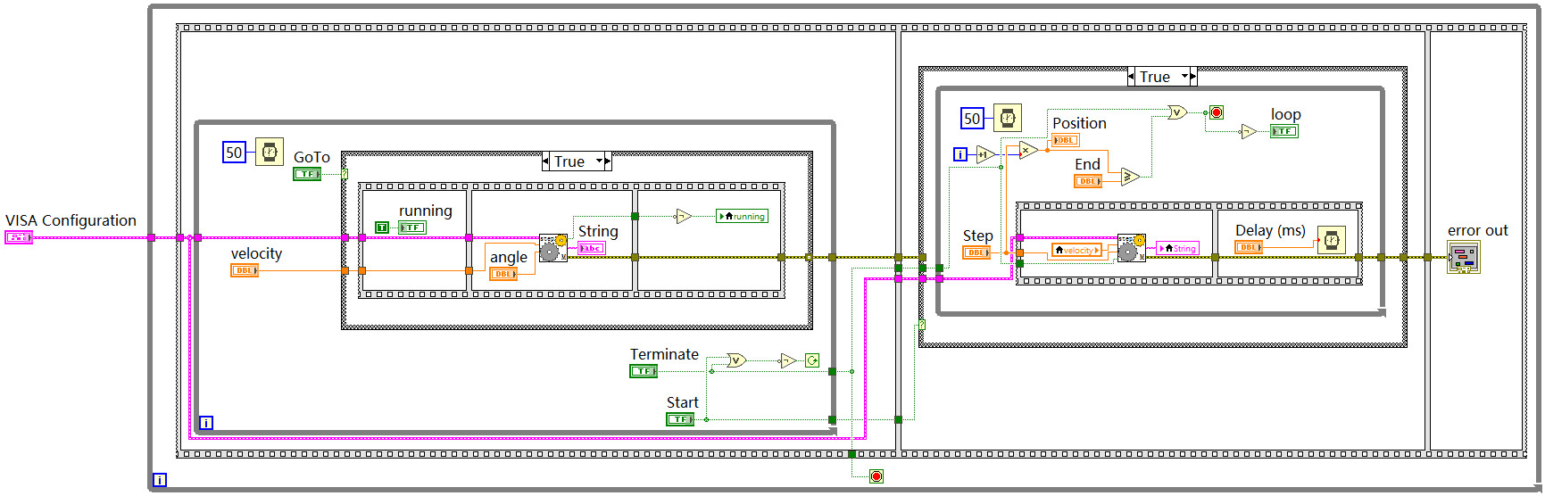 🌻 利用模块化设计的旋转子 VI 程序,结合 while 循环实现连续旋转控制。