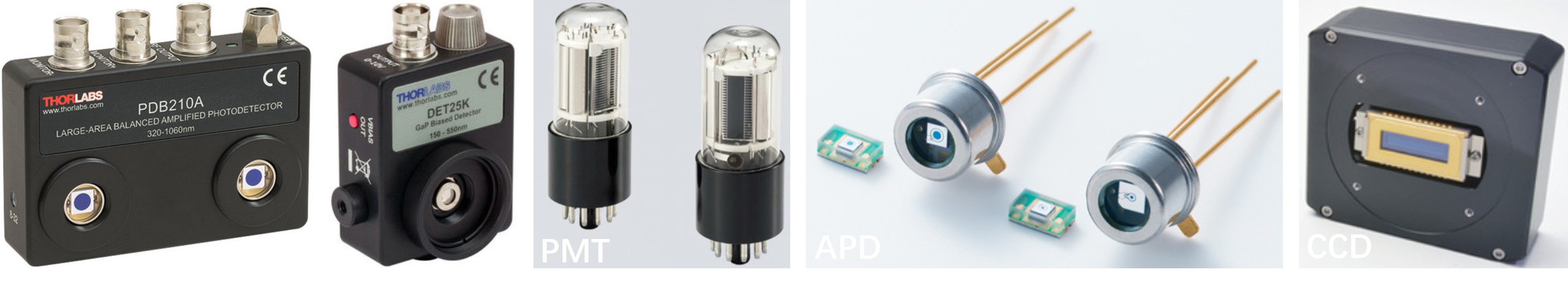 🍦 或使用光电探测器(PD)、雪崩探测器 (APD)、光电倍增管 (PMT)、CCD 传感器等。