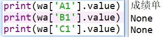 【注】如果A1,B1,C1合并单元格,查看A1有值,B1和C1都没有值,显示‘None’