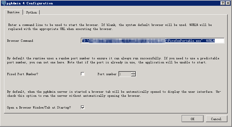 下面说明如何设置使用其他浏览器打开pgAdmin