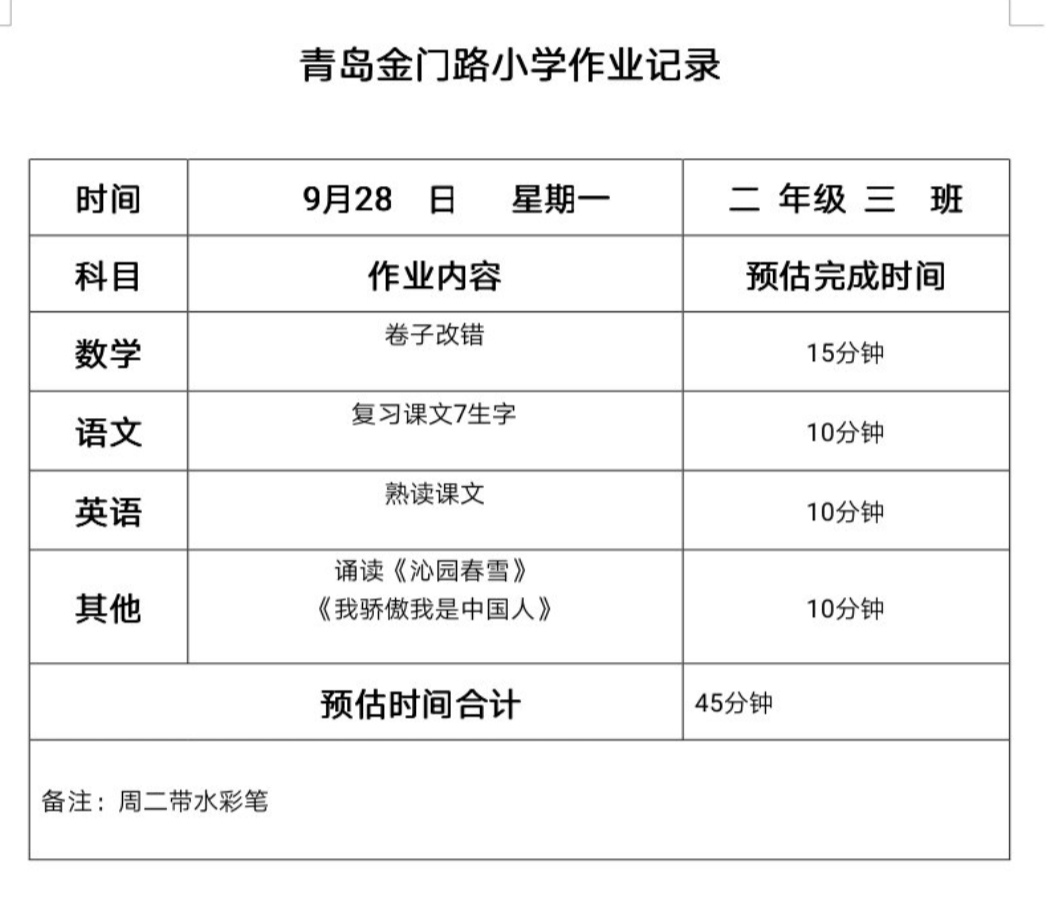 二年级三班作业公开9.28