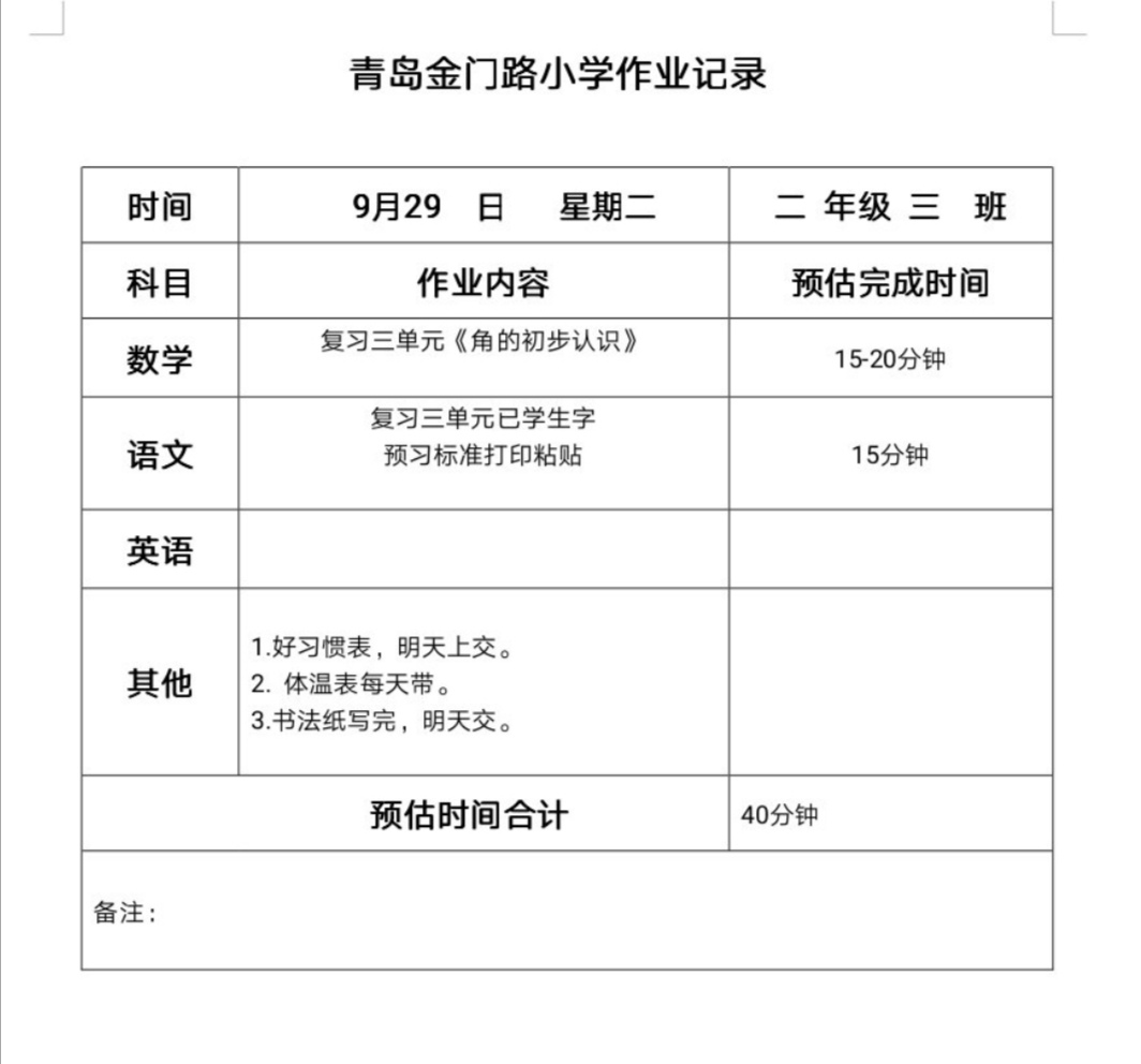 二年级三班作业公开9.29