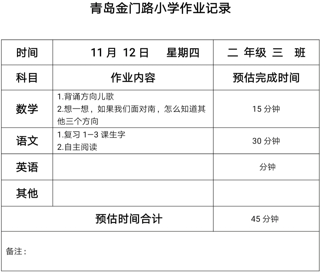 二年级三班作业11.12