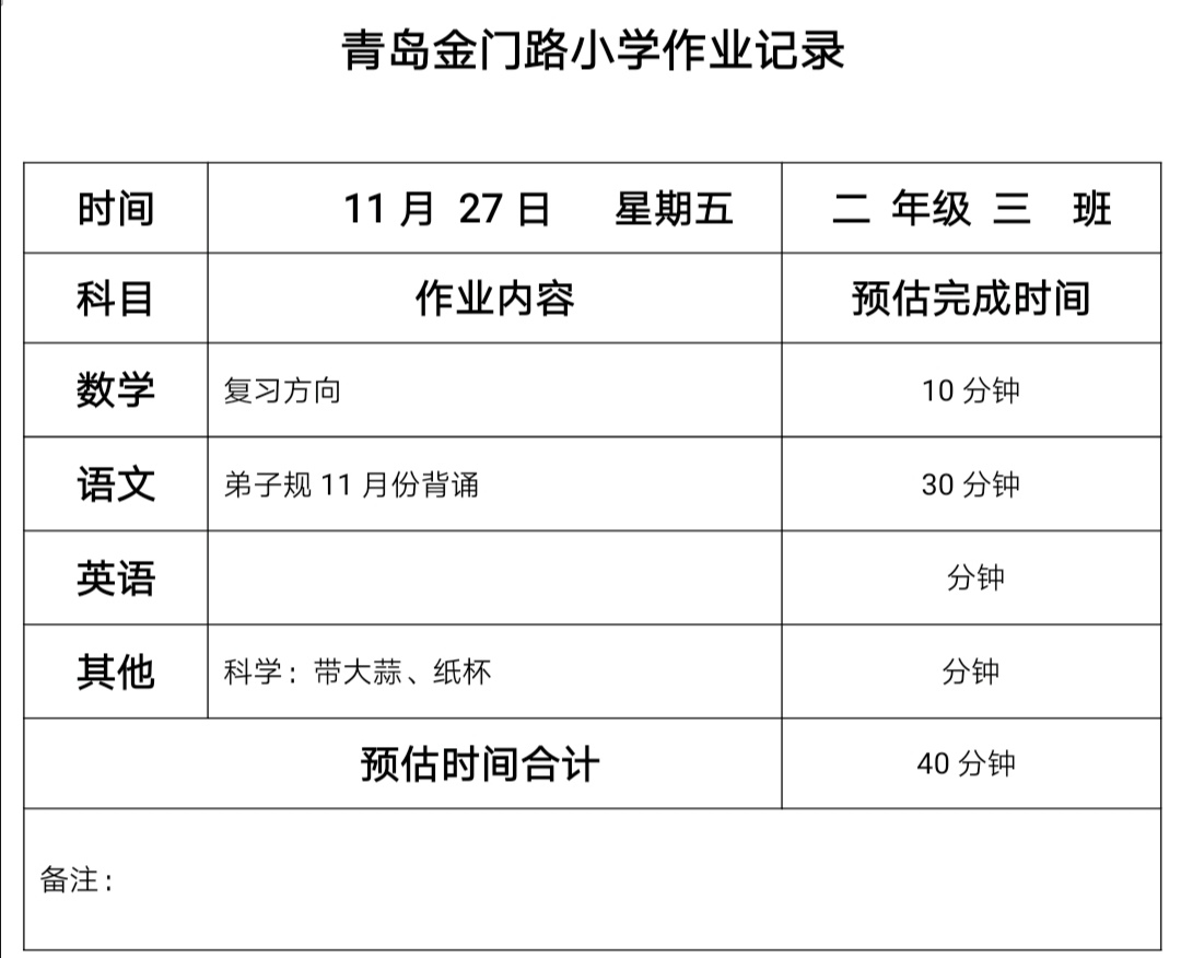 二年级三班作业11.27