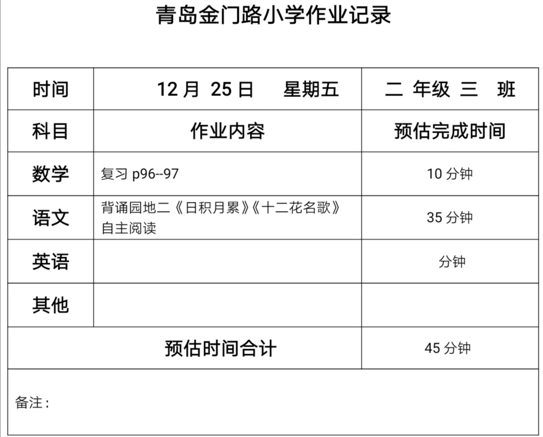 二年级三班作业12.25