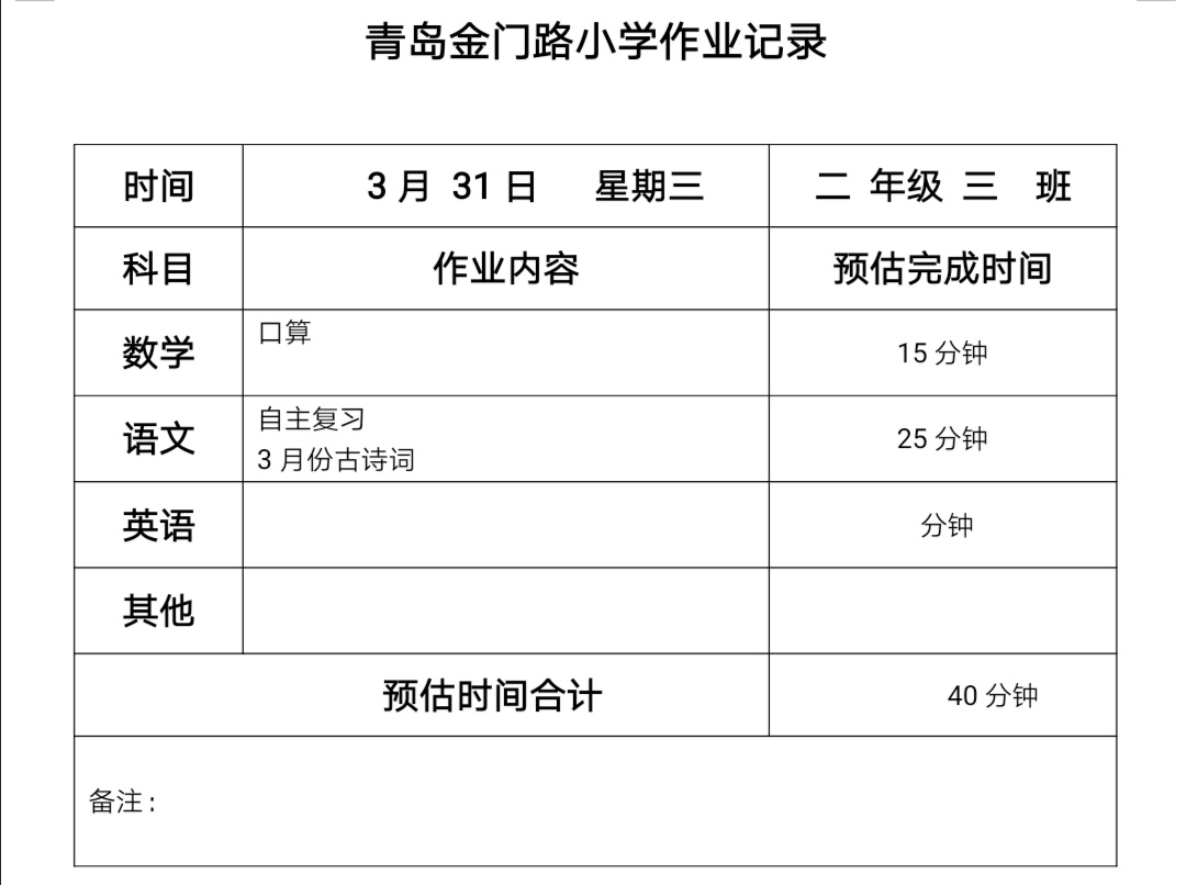 二年级三班作业3.31