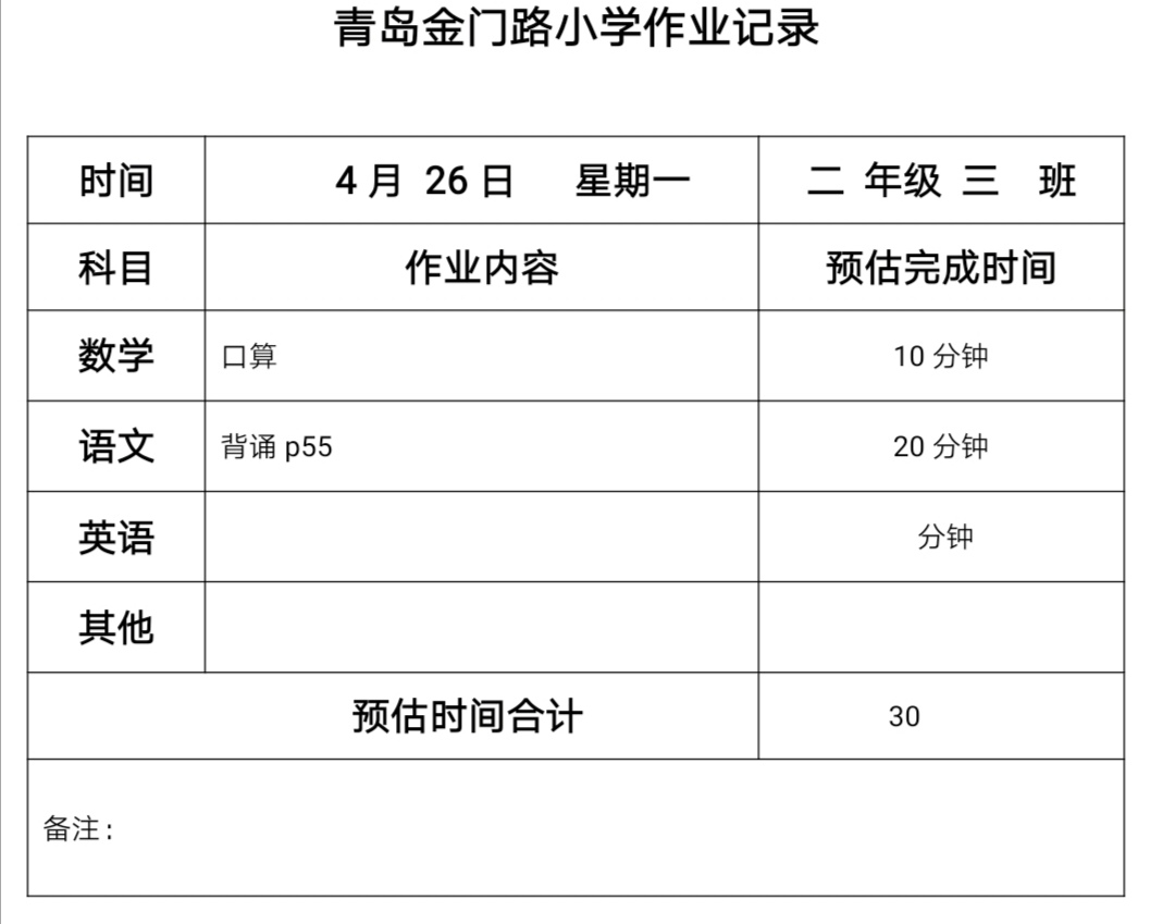 二年级三班作业4.26