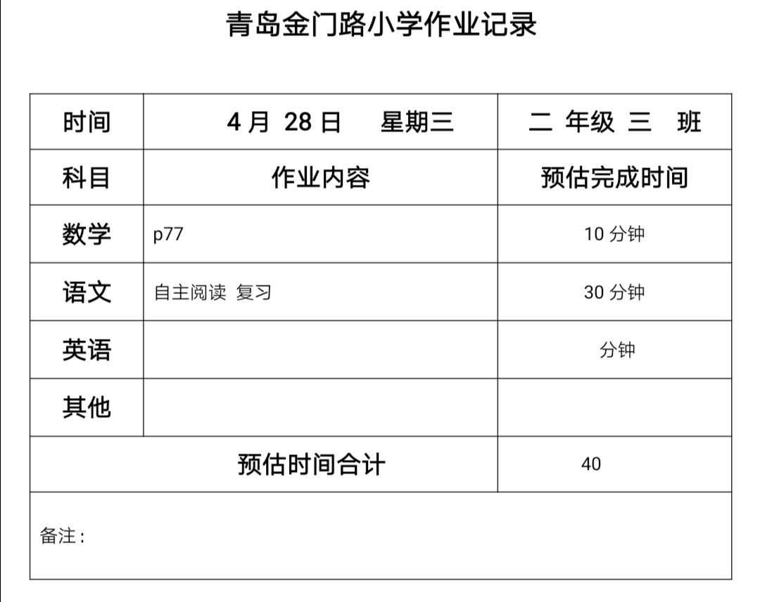 二年级三班作业4.28