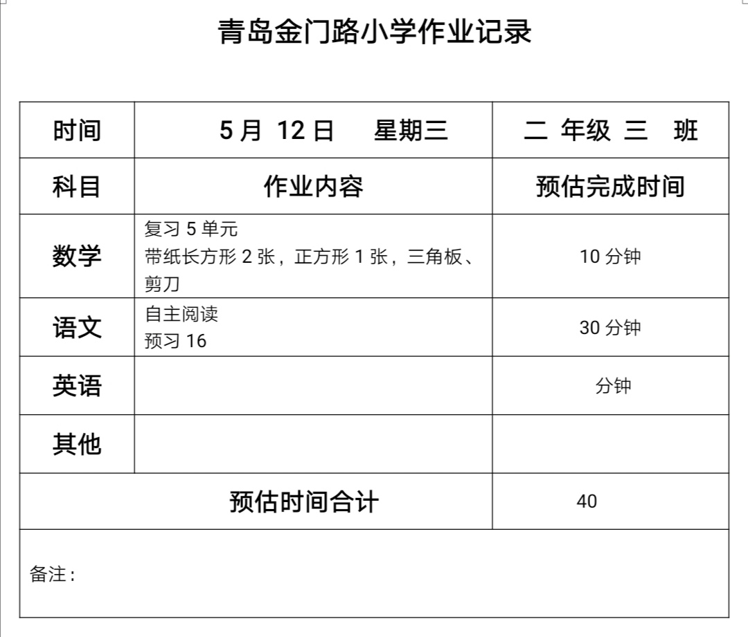 二年级三班作业5. 12