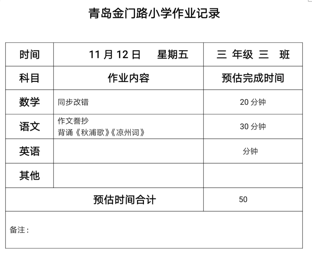 三年级三班作业11.12