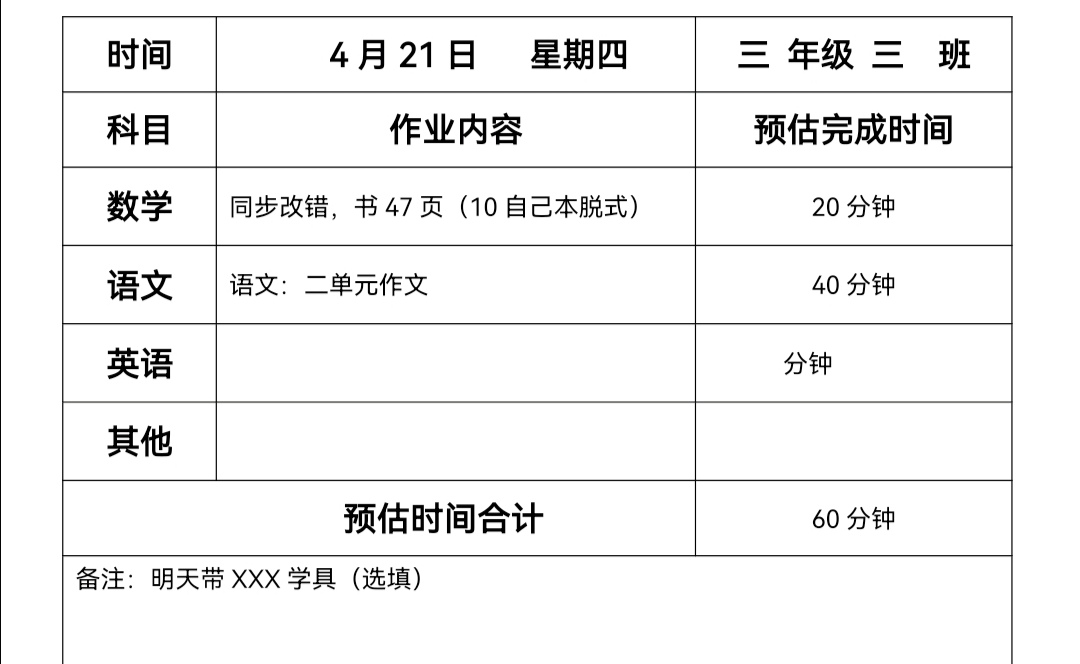 三年级三班作业4.21