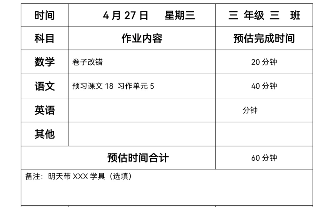 三年级三班作业4.27