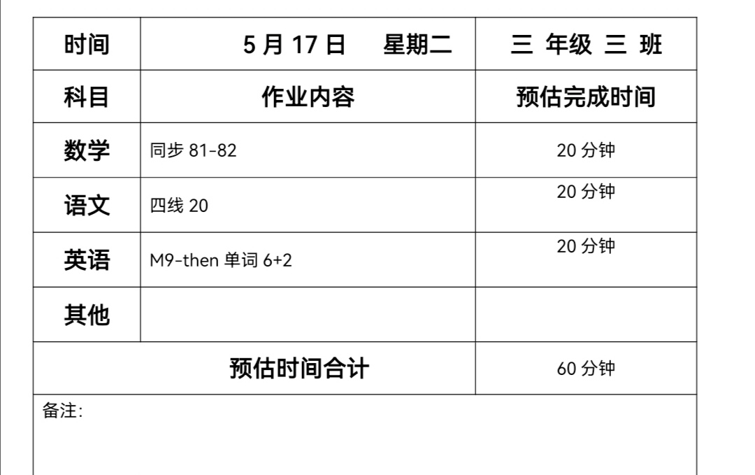 三年级三班作业5.17