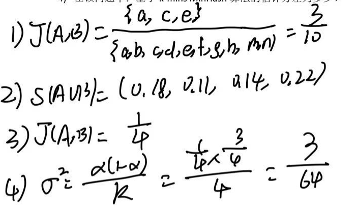 - 请基于 S(A∪B)估计集合 A 和集合 B 的 Jaccard 相似性。