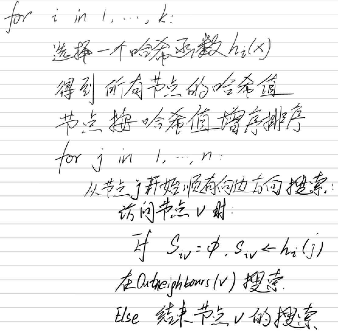 - 请设计一个算法计算图中所有节点的 k‐mins sketch,即对于任意的 v 计算所有的 S(v)。