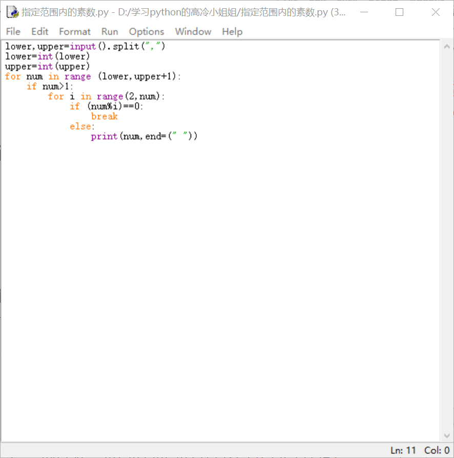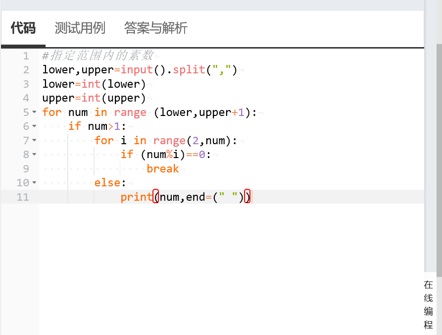 编程实现输出指定范围内的素数,输入以逗号间隔,输出以空格间隔。指定范围由用户输入指定。
