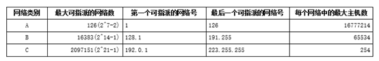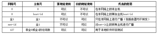 上图为分类IP地址可以指派的范围,下图为不使用的特殊IP地址或只能在特定情况下使用。对上述IP相关内容总结可以得出以下列表: