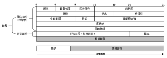 13) 可变部分,最多占40个字节。主要用来支持排错、测量以及安全等措施。可变部分基本上不被使用,像新版的IPv6首部不存在可变部分。