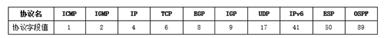 9) 协议,占8位。它指出数据报携带的数据是那种协议,以便使目的主机的IP层知道应将数据部分上交给哪个协议进行处理。