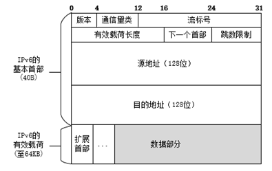 iii. 灵活的首部格式,IPv6数据报的首部和IPv4不兼容,IPv6定义了可选的扩展首部,不仅可提供比IPv4更多的功能,还可提高路由器的处理效率,因为路由器对扩展首部不进行处理(除逐跳扩展首部外)。