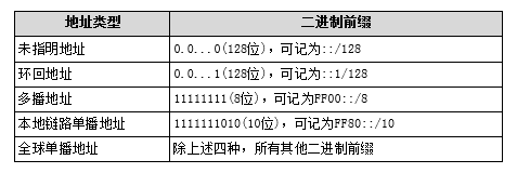 a) 未指明地址,这是16字节的全0地址,可缩写为“::”,这个地址不能用作目的地址,而只能为某台主机当作源地址使用,条件是这台主机还没有配置到一个标准的IP地址。