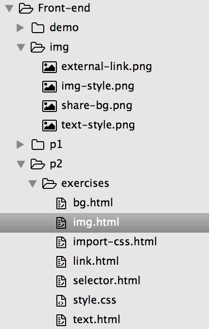 img.html在exercises目录,那么它的父目录就是p2,父目录的父目录就是Front-end目录,于是先通过../../两个父目录找到Front-end目录,而img-style.png在img目录,img目录在Front-end目录中,