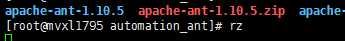 4. 上传成功之后,使用unzip apache-ant-1.10.5.zip 命令解压到当前文件夹,使用pwd查看当前文件路径,需要在jenkins配置用到