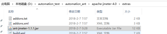2. 解压下载的ant包,然后复制jmeter/extras下的ant-jmeter-1.1.1.jar文件放到ant的lib目录