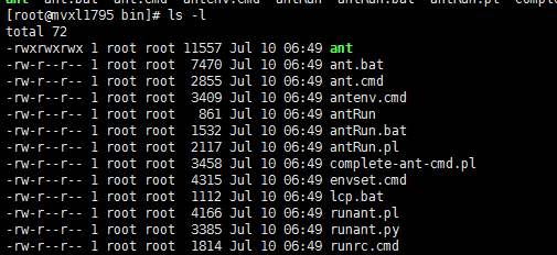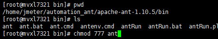 5. 然后进入到bin路径,赋予ant执行权限,Chmod 777 ant